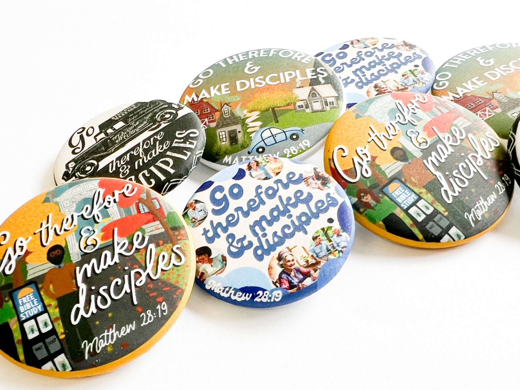 These light-weight and durable pins come in packs of up to 100. They measure 1.25 inches across, have a matte finish, and are backed with a bar pin closure to keep it securely in place at all times.
