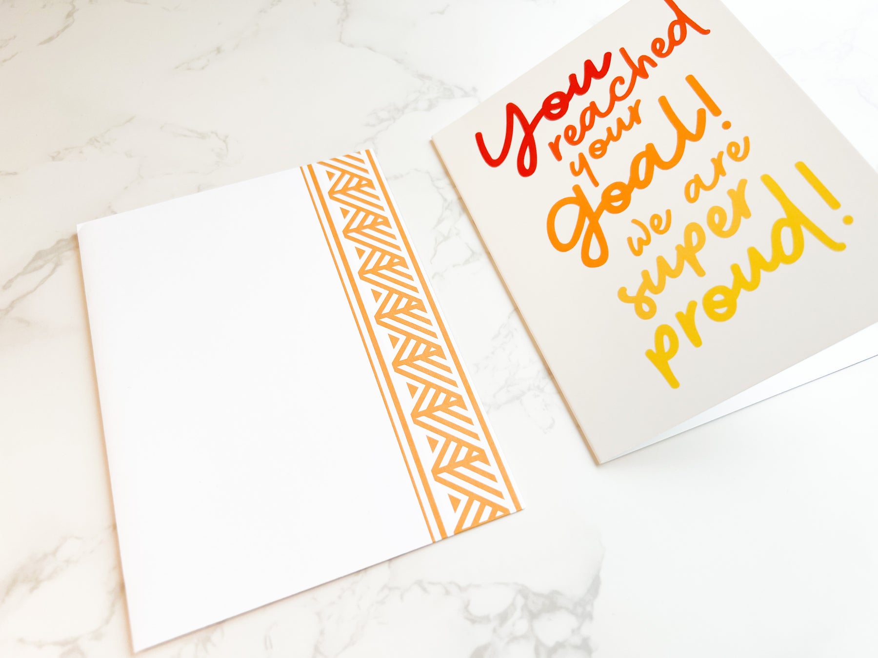 This colorful greeting card measures 4x6 inches, and comes with a matching envelope. Inside, you’ll find the a blank space to write all your thoughts and feelings.