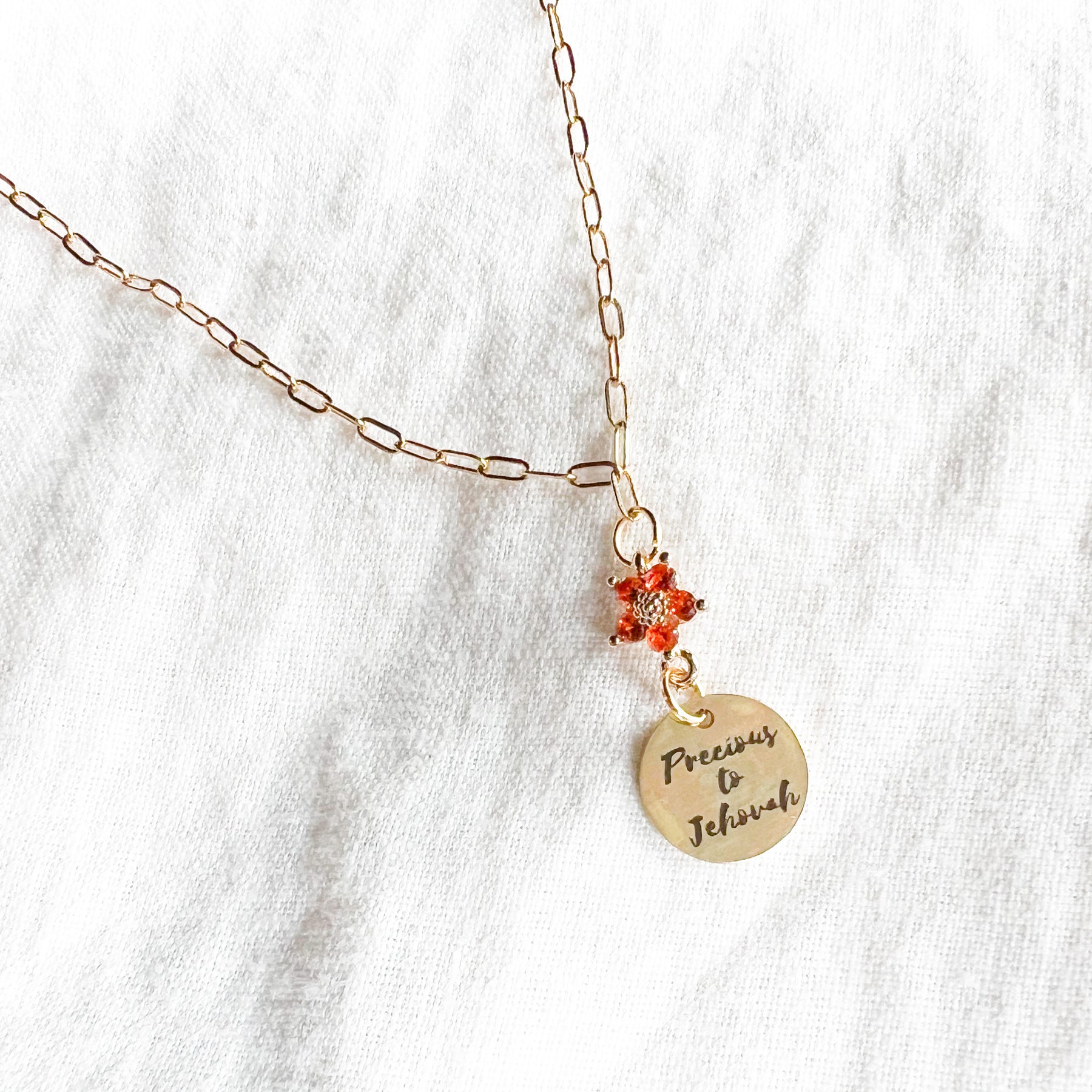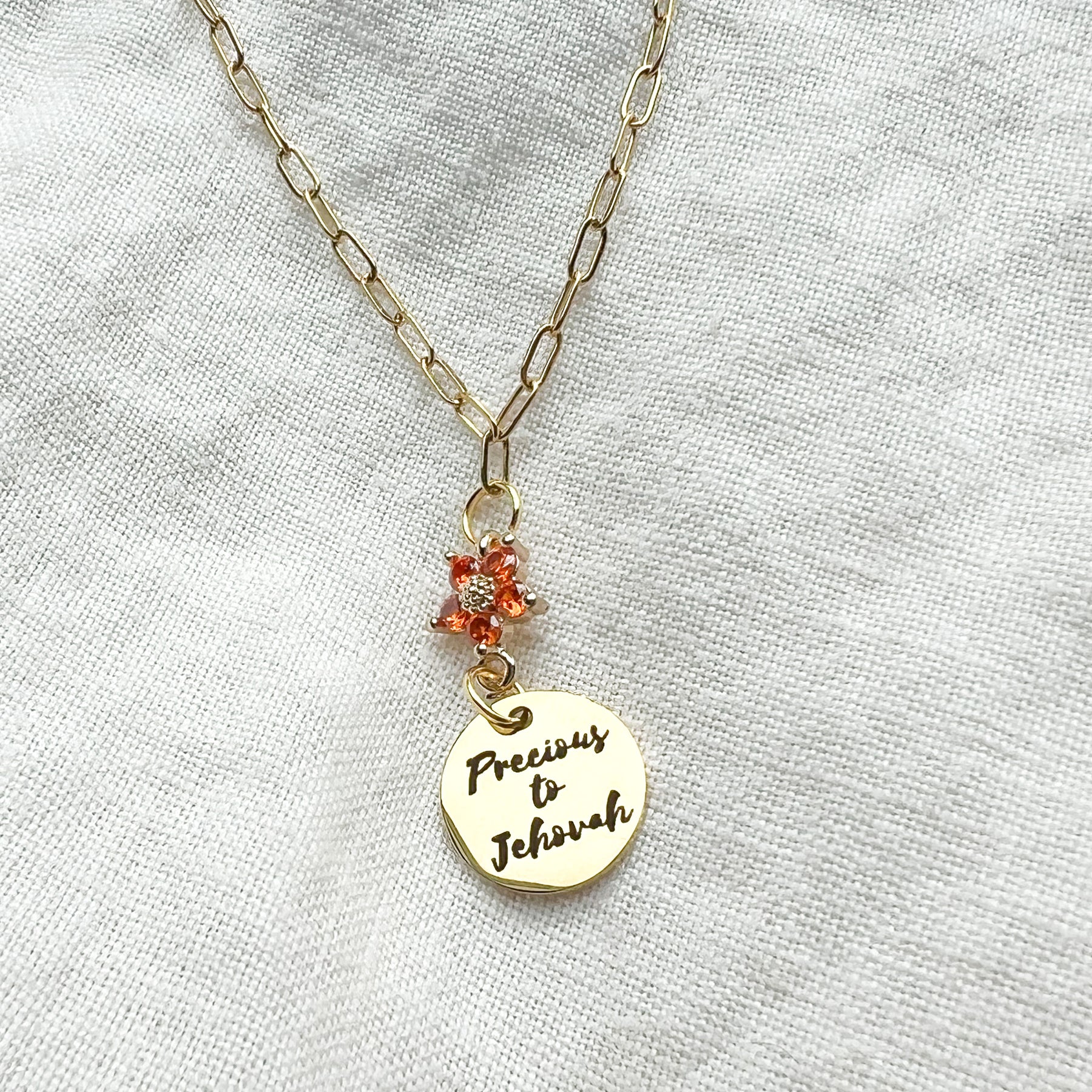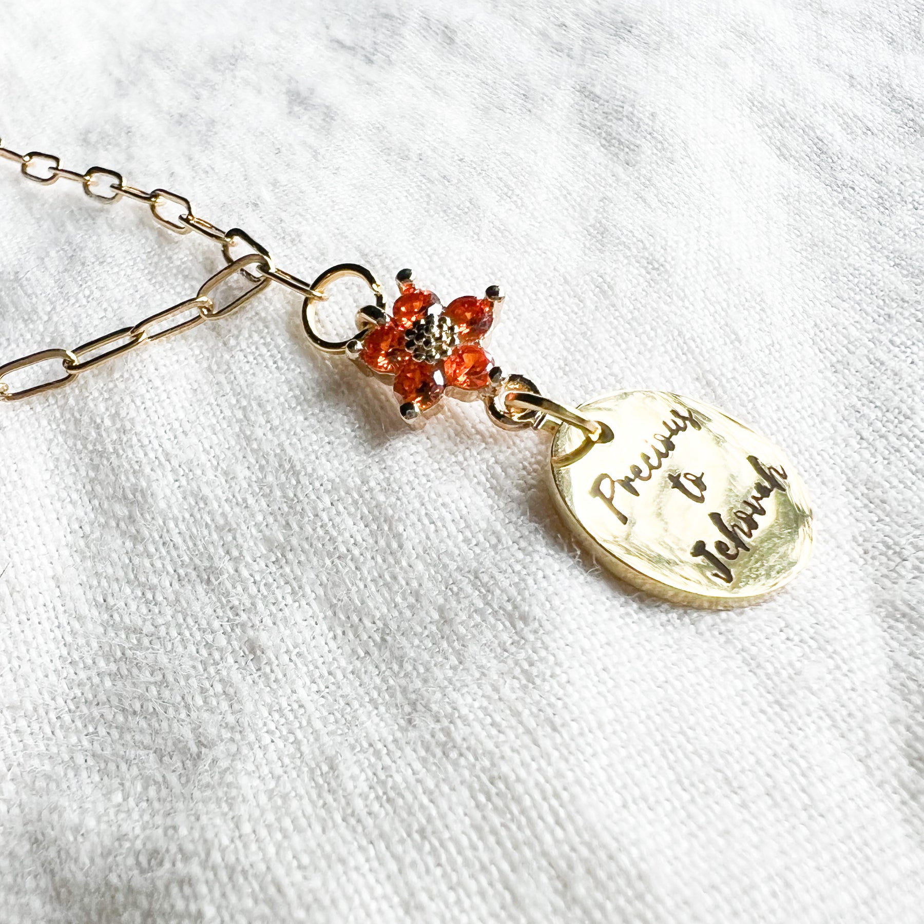 You are Precious To Jehovah Gold Orange Flower Necklace