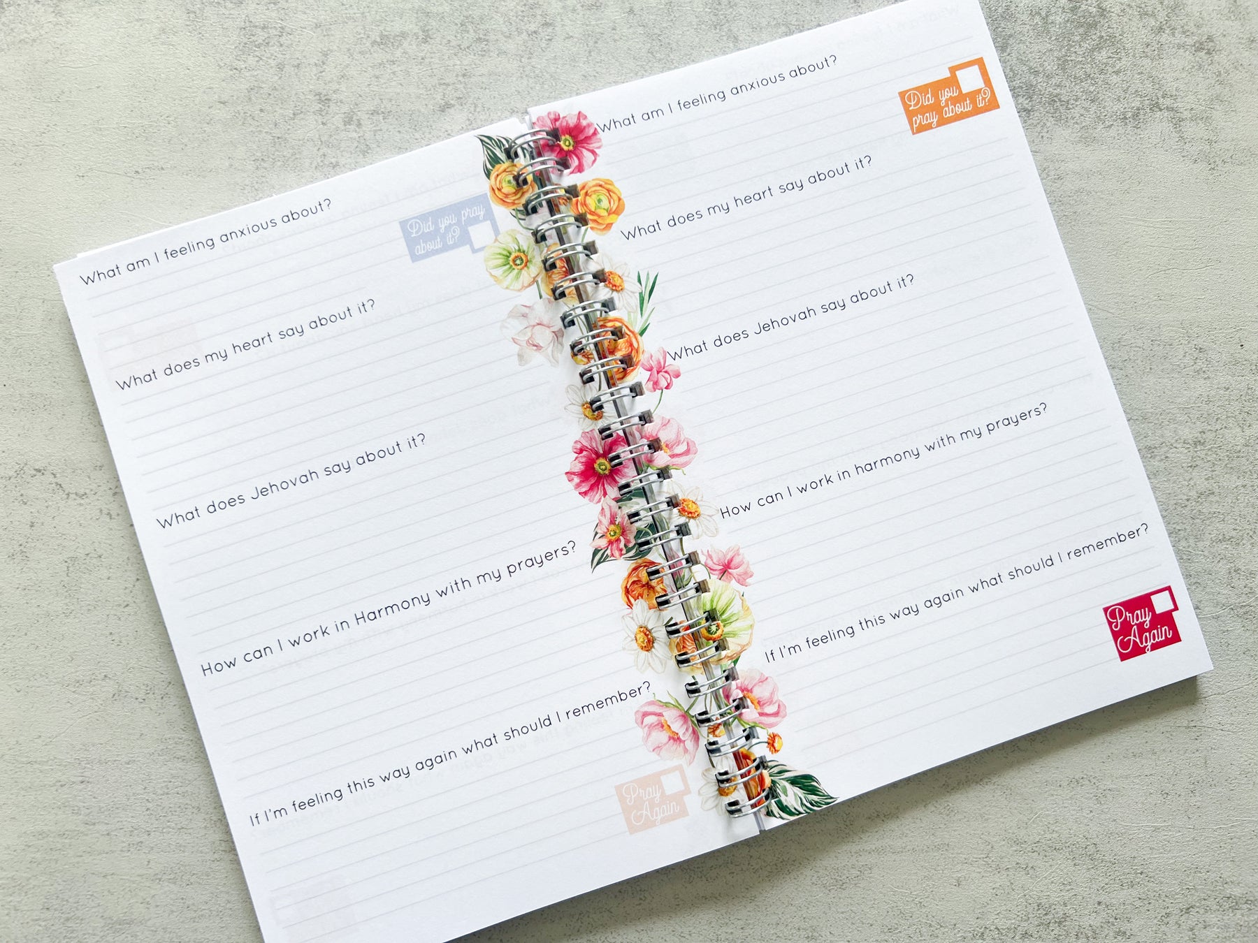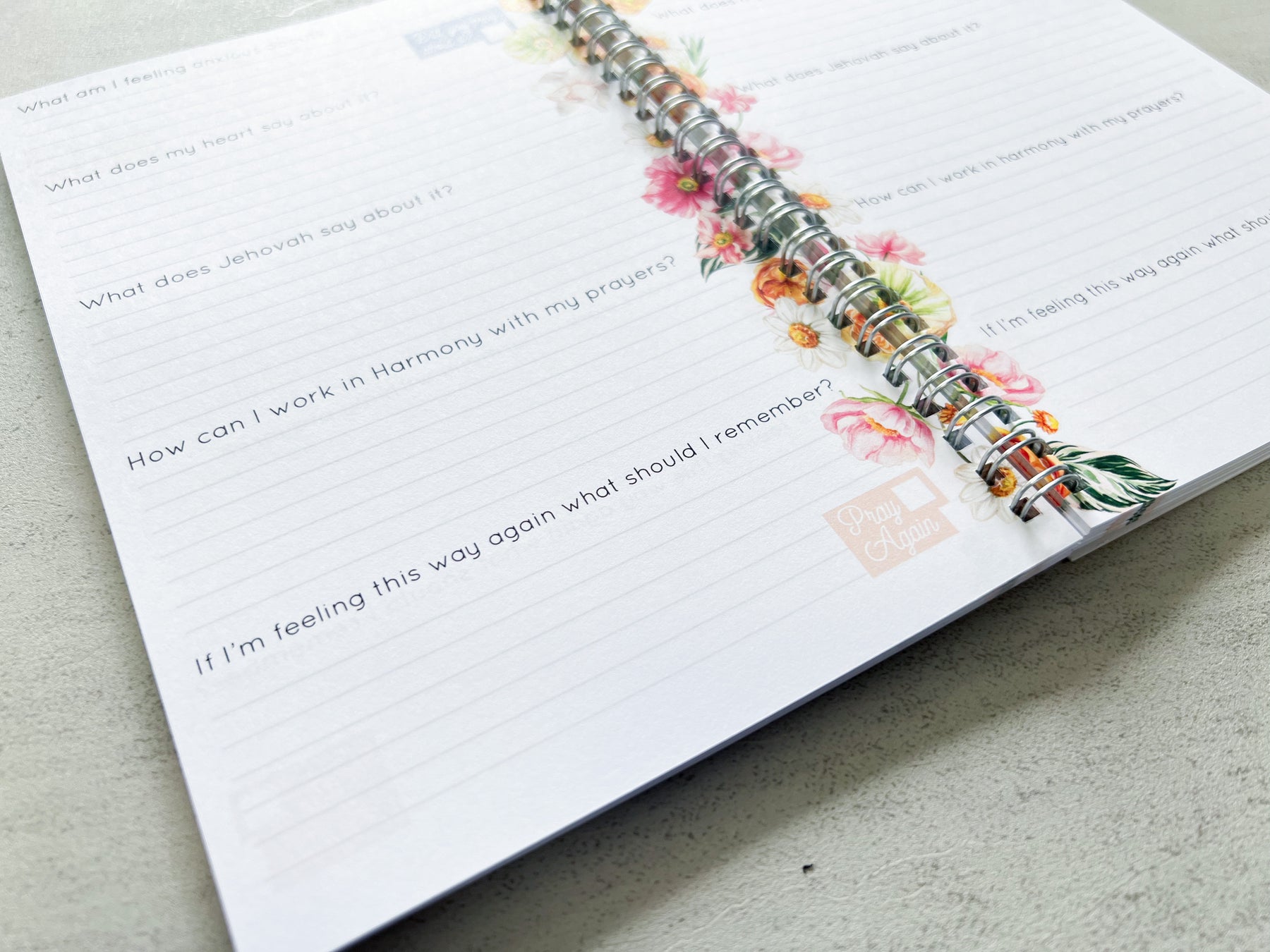 Feeling Anxious? You are not alone. Trust us. This journal has questions to ask yourself when you have worries on your mind. It guides you on a path of questions from our thinking to Jehovah’s. In case you need a little inspiration there are a bunch of scriptures on the margin to help with those anxious thoughts.