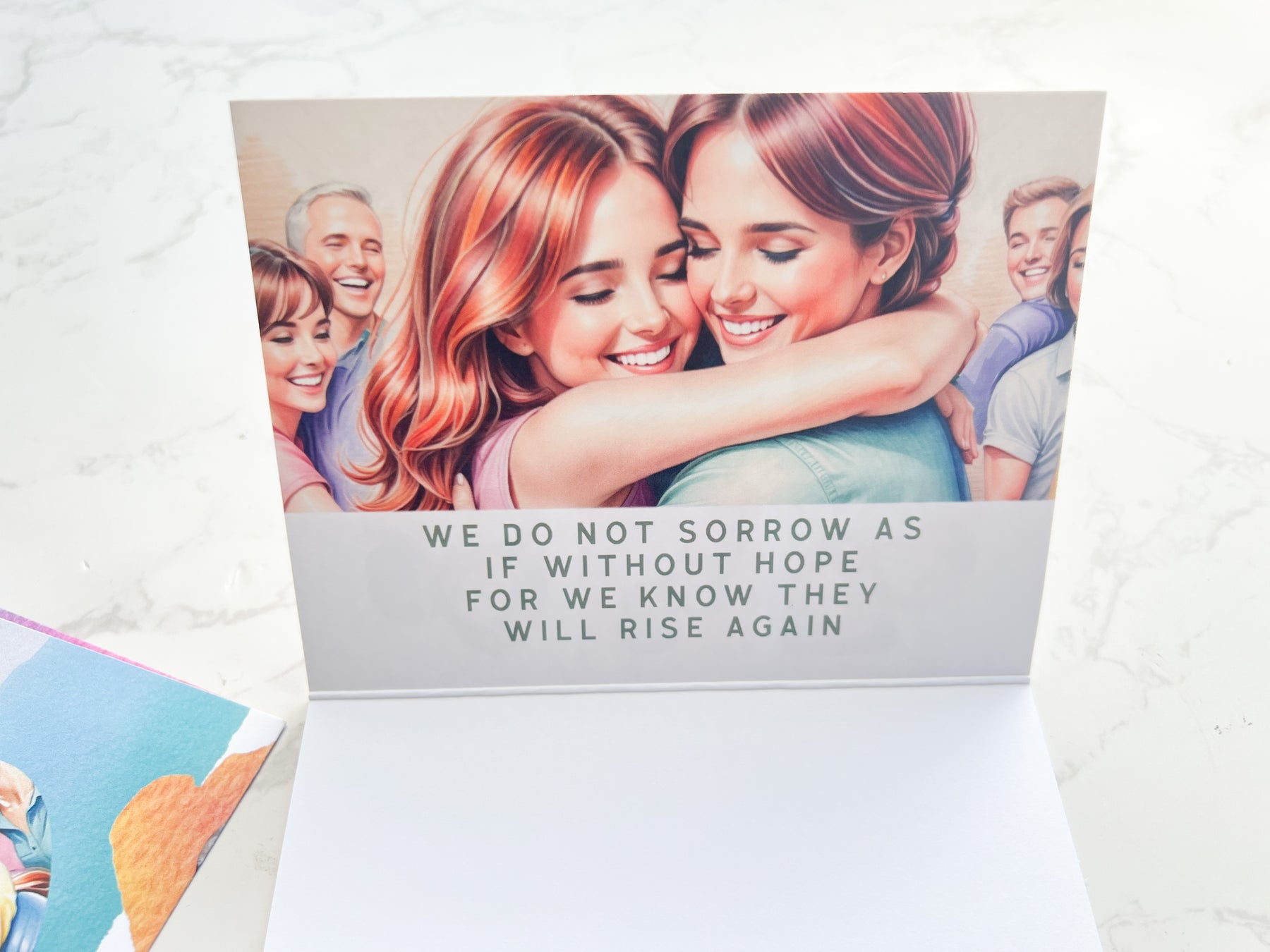 The glossy card measures 4x6 inches, and features the words “Jehovah will call & they will answer,” Job 14: 14, 15 on the inside. The matching envelope includes a reference to Isaiah 25:8 on the back.