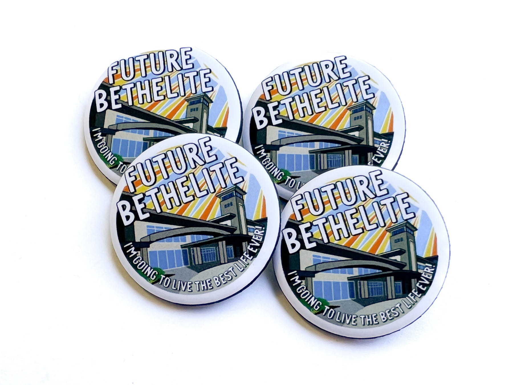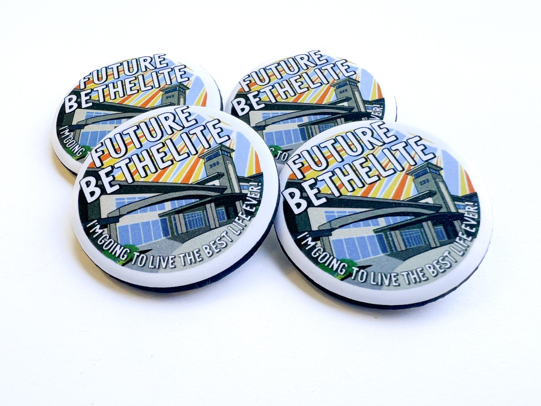 Instead of leaving them behind like young Jesus in the temple, give them a pin that reminds them it’s okay – they can always come back in a few years.