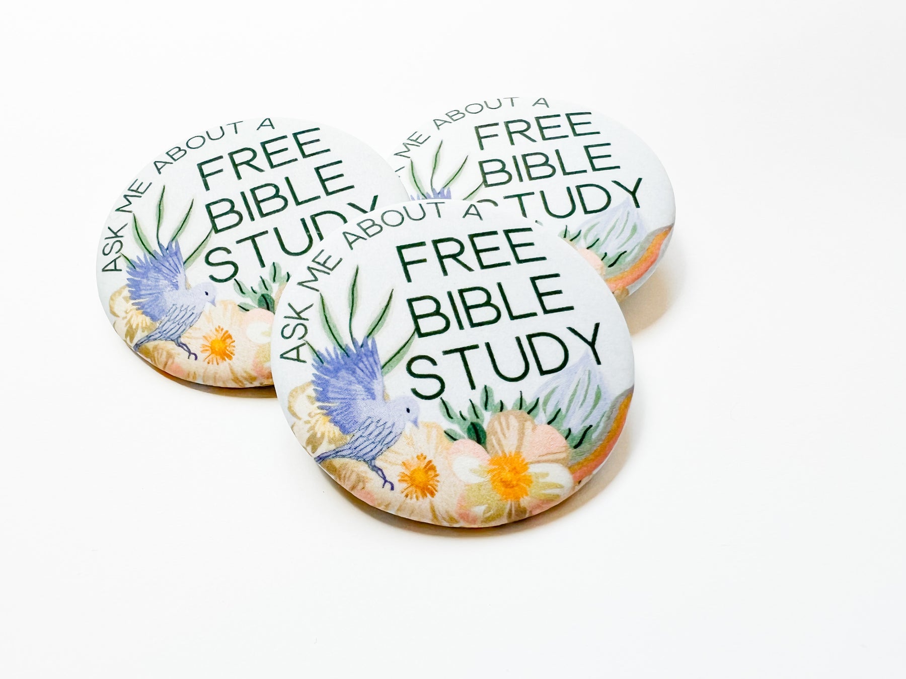 Ask Me About A Free Bible Study Pins - Peaceful Floral
