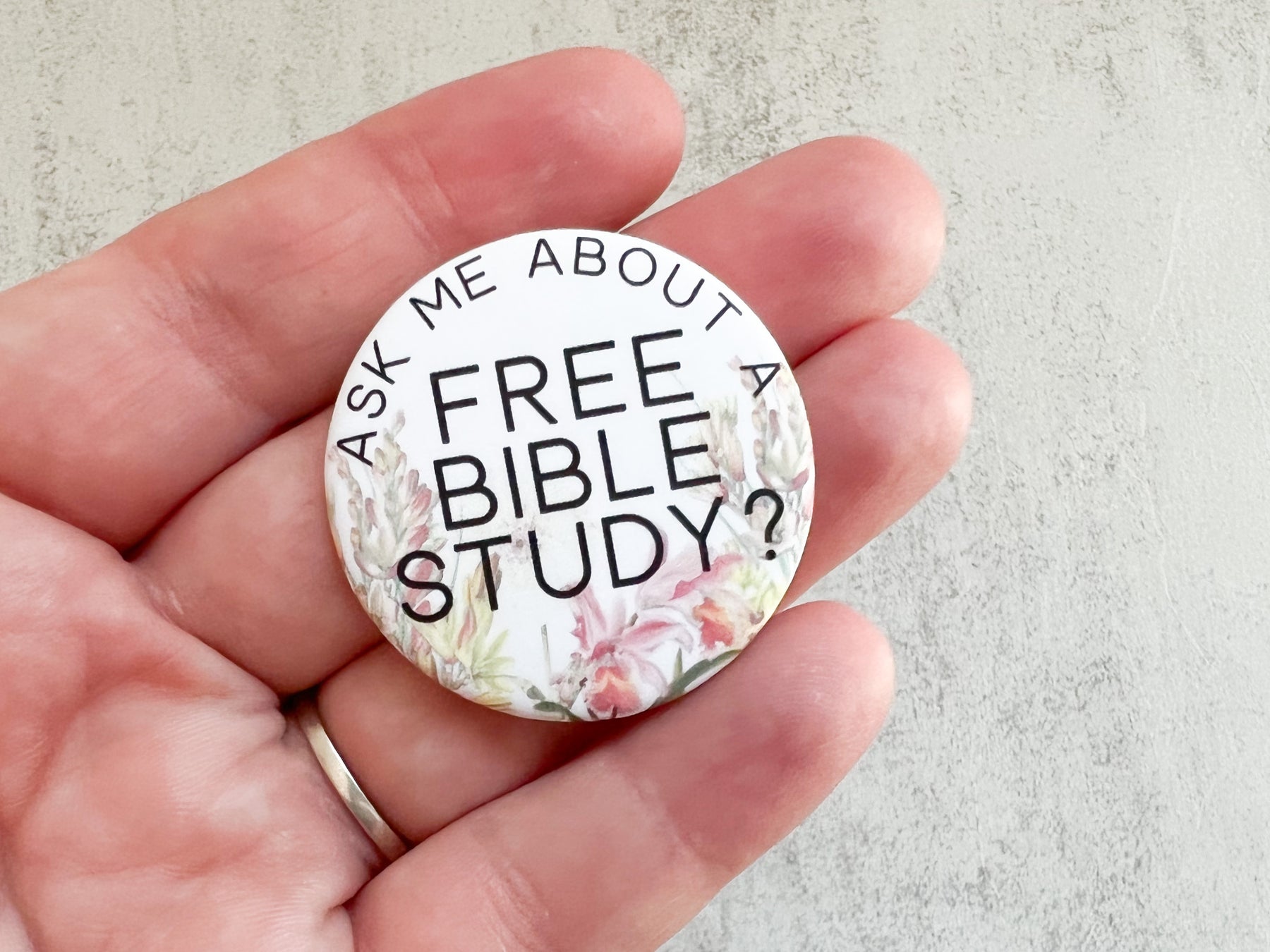 Ask Me About A Free Bible Study Pins - Vintage Floral - GINGERS