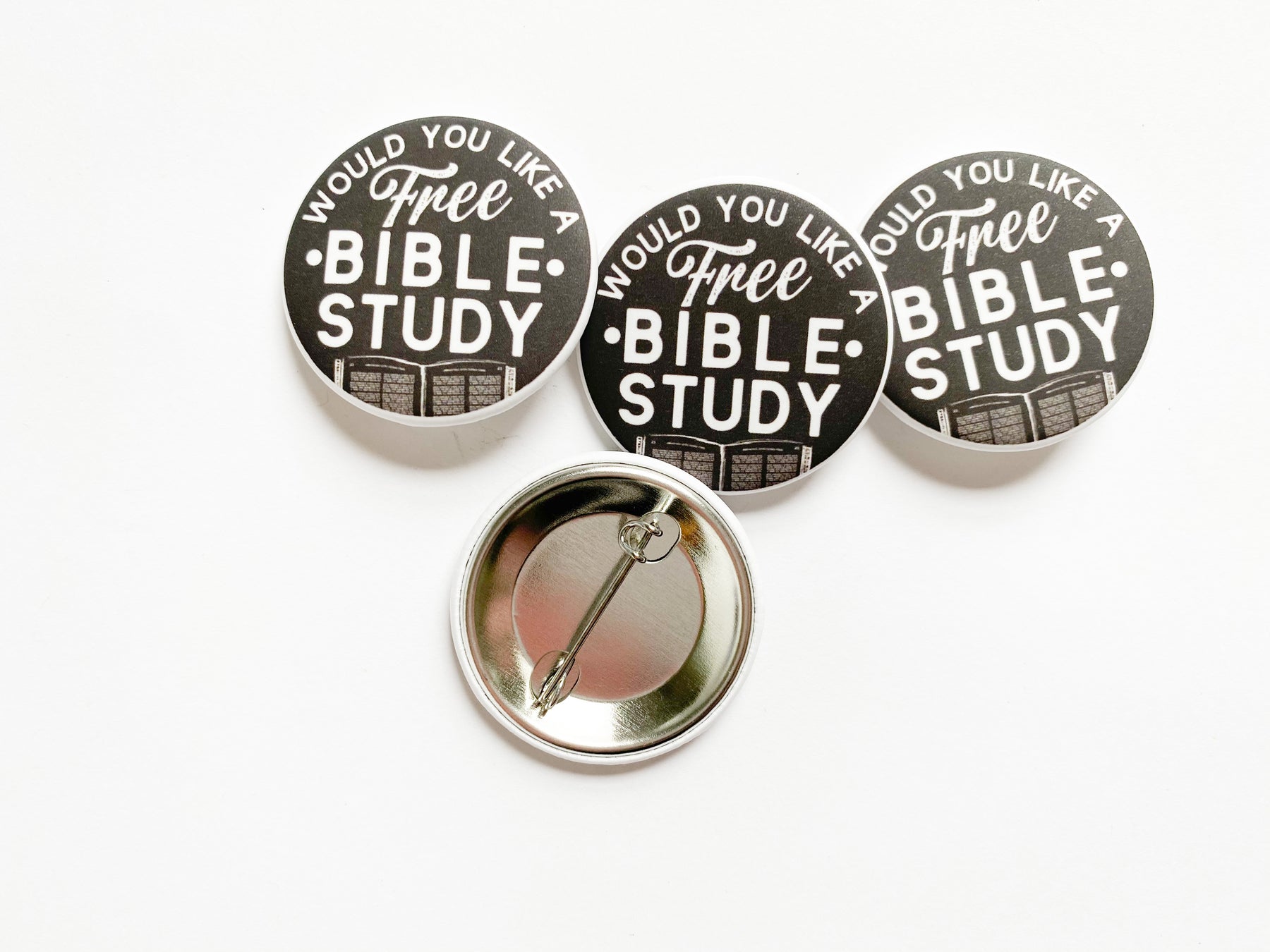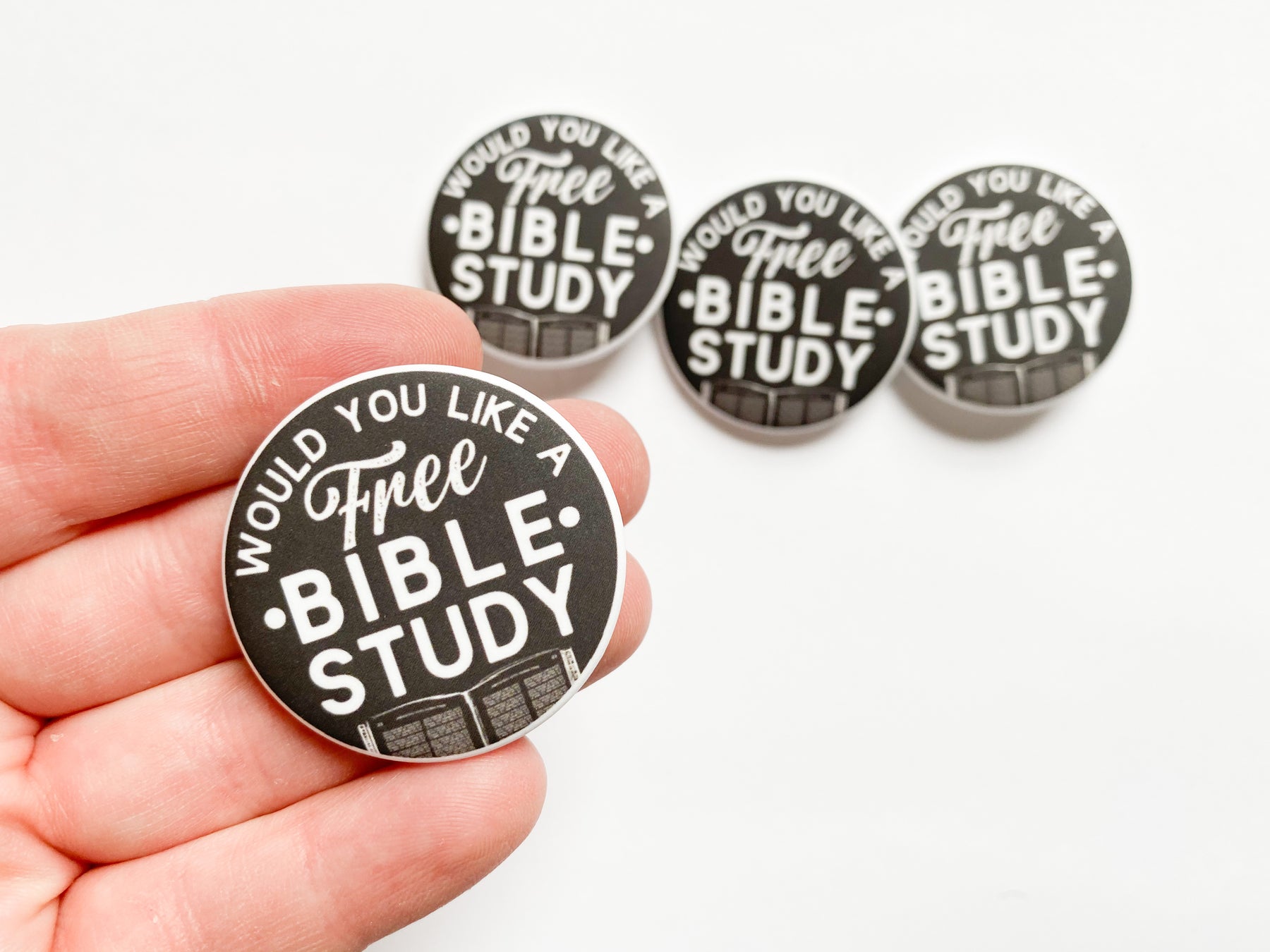 Do you have some “good news [...] to be preached” but sometimes get stuck feeling “slow of tongue”? We’ve been there too. With this “Ask Me About a Free Bible Study” pin, we’ve taken care of the conversation starter - you take it from here.
