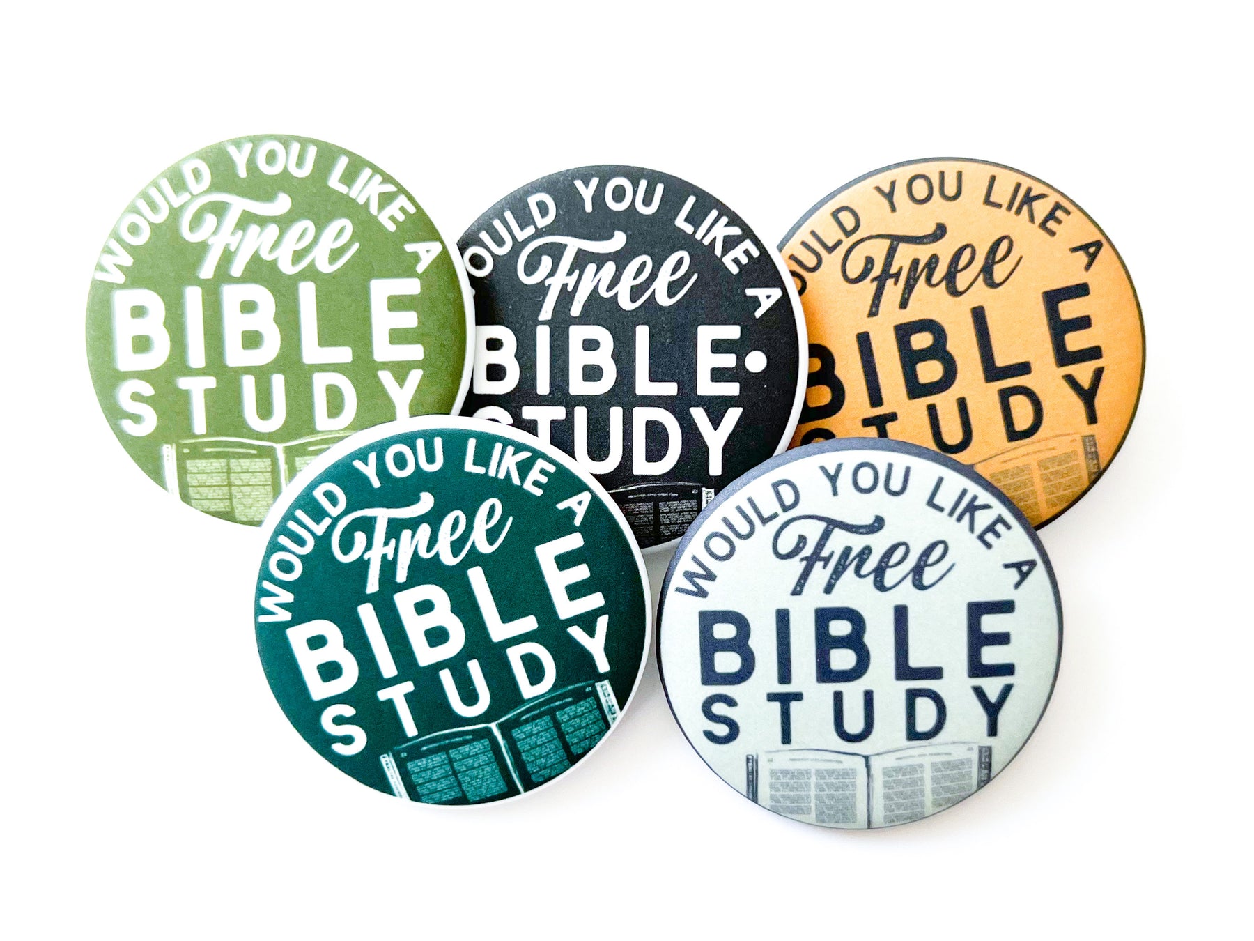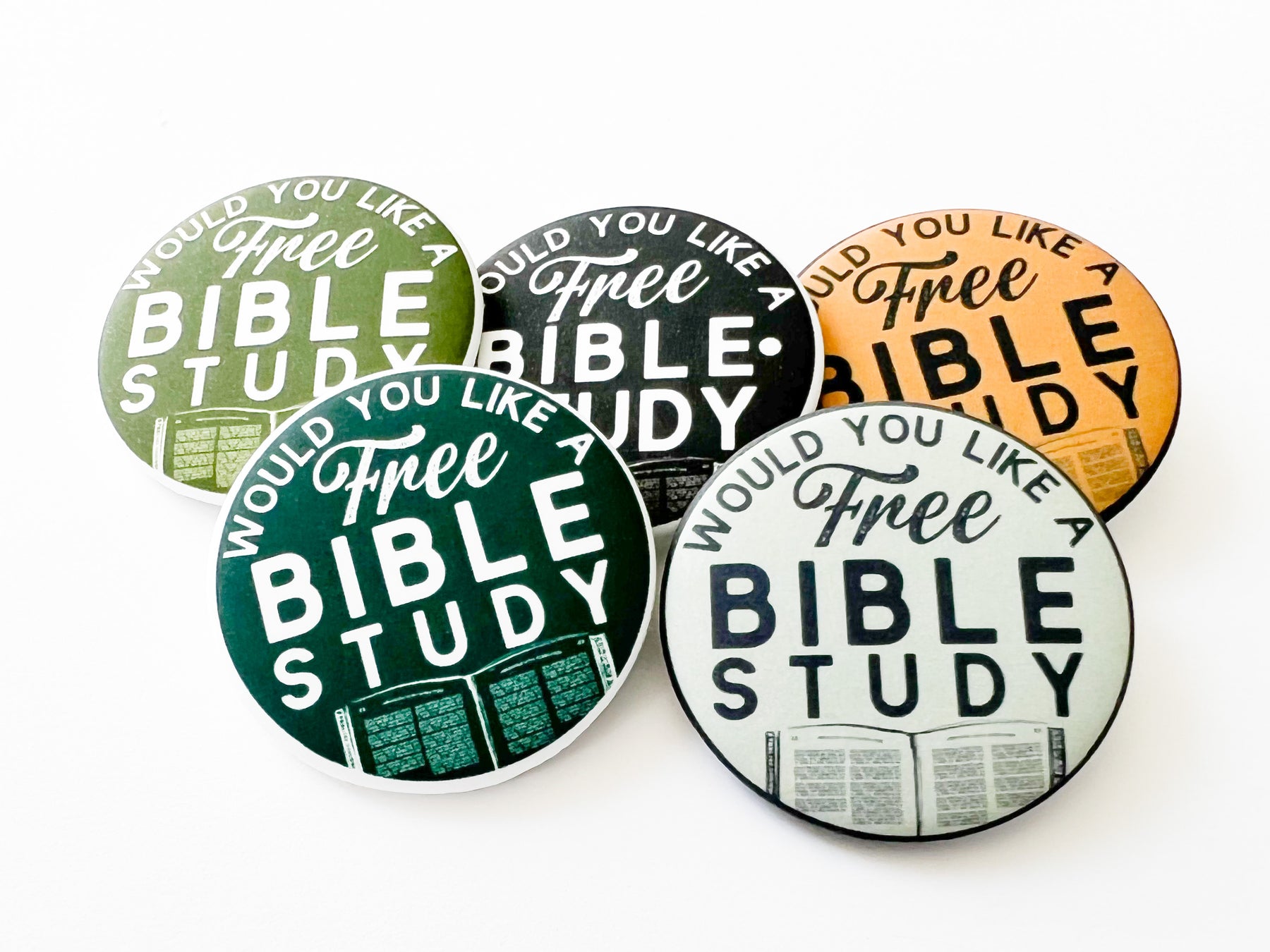Do you have some “good news [...] to be preached” but sometimes get stuck feeling “slow of tongue”? We’ve been there too. With this “Ask Me About a Free Bible Study” pin, we’ve taken care of the conversation starter - you take it from here.