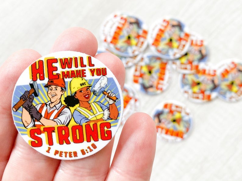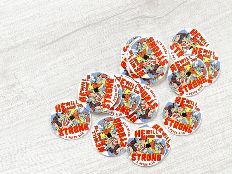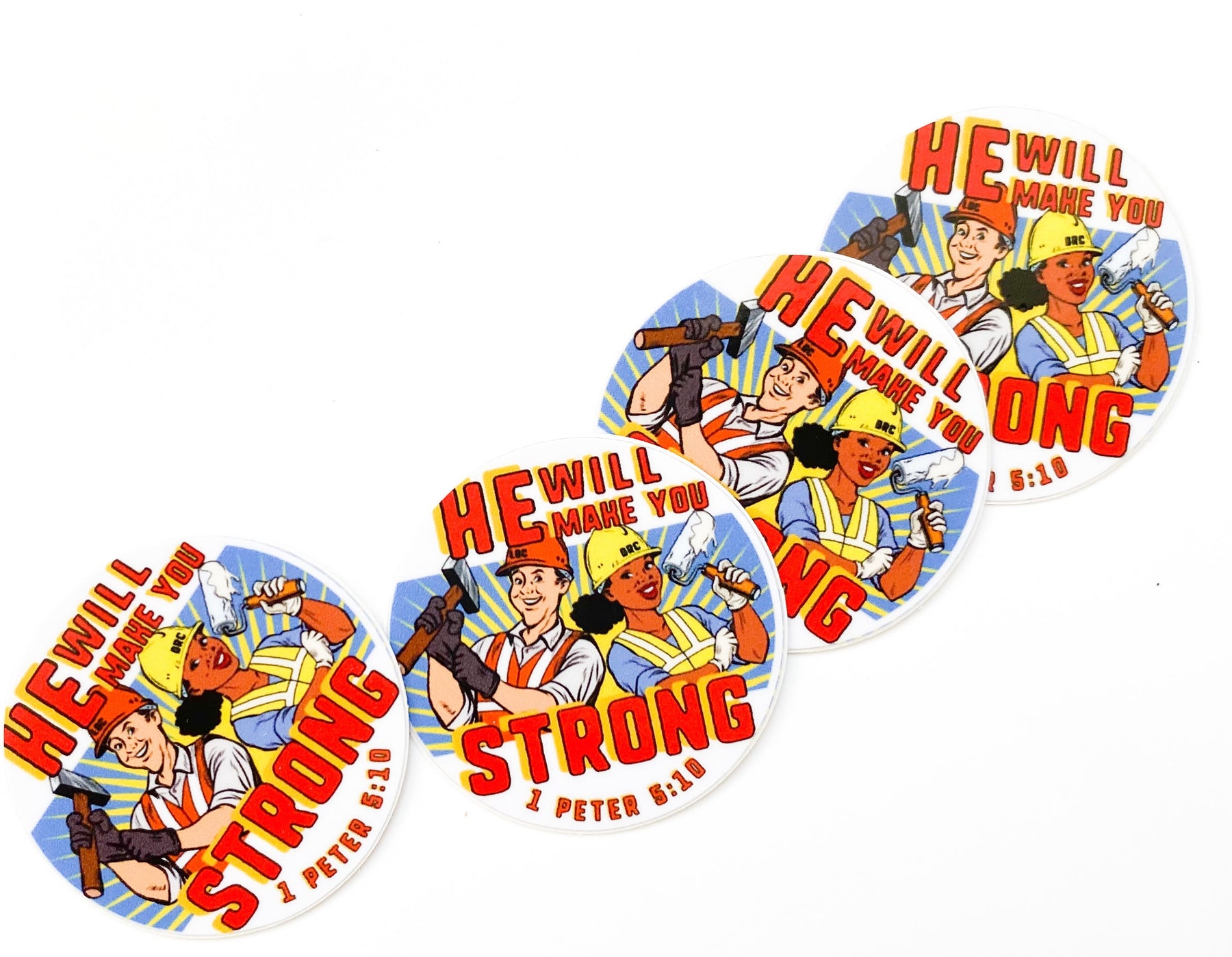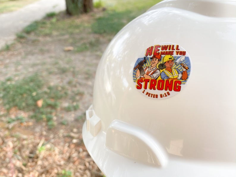LDC DRC Volunteer Hard Hat Sticker - He Will Make You Strong - GINGERS