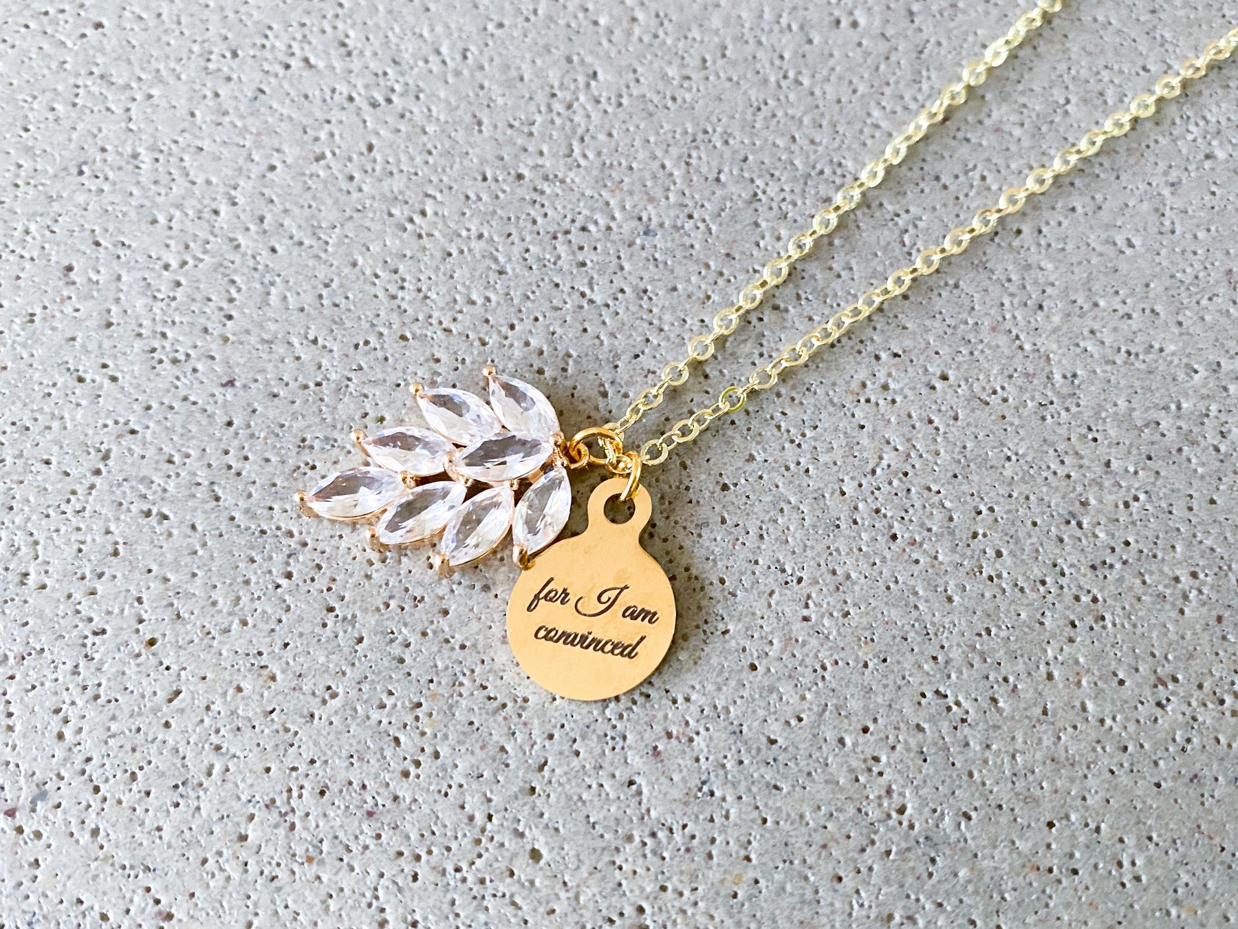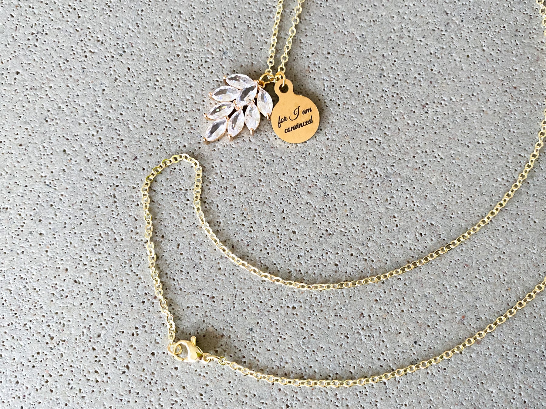 For I Am Convinced Rhinestone Gold Necklace