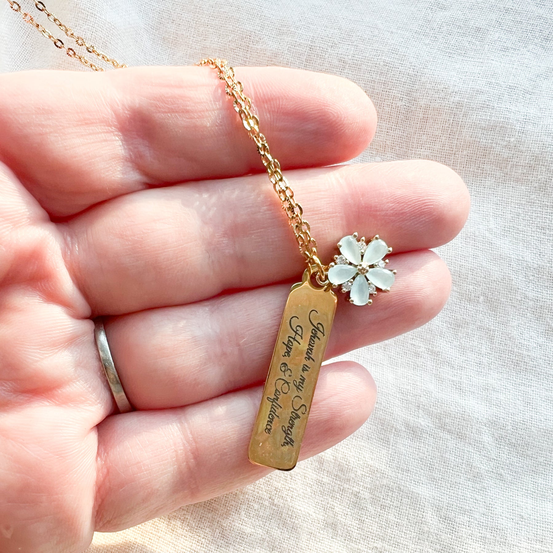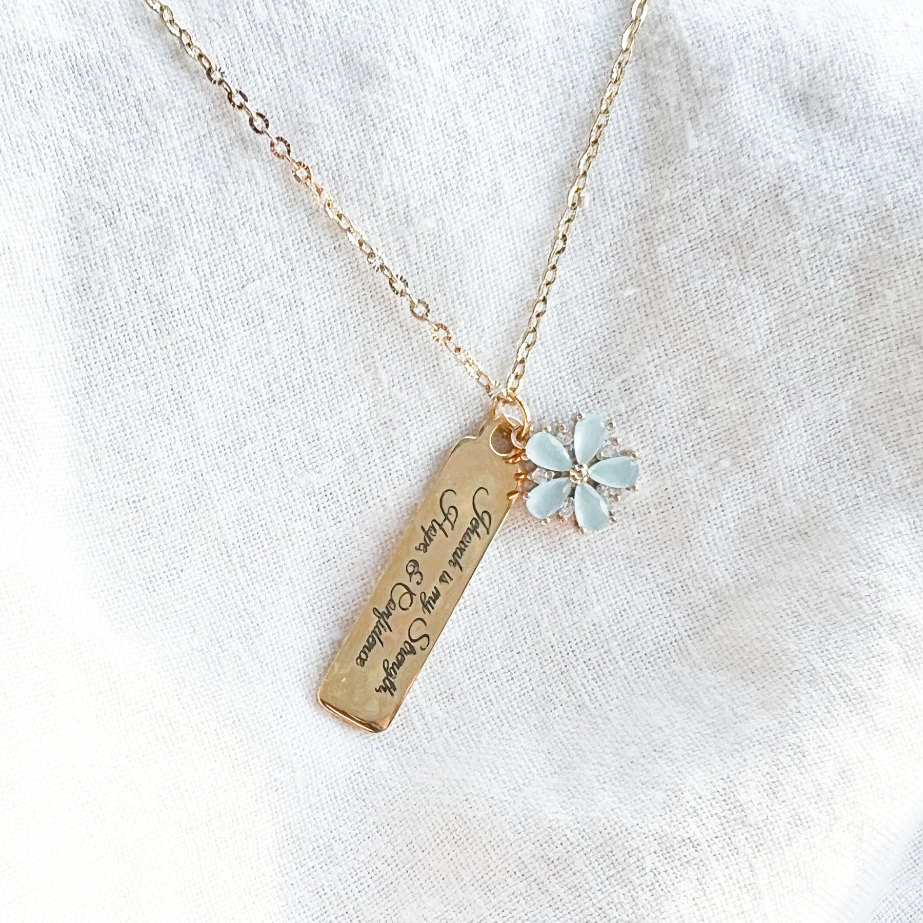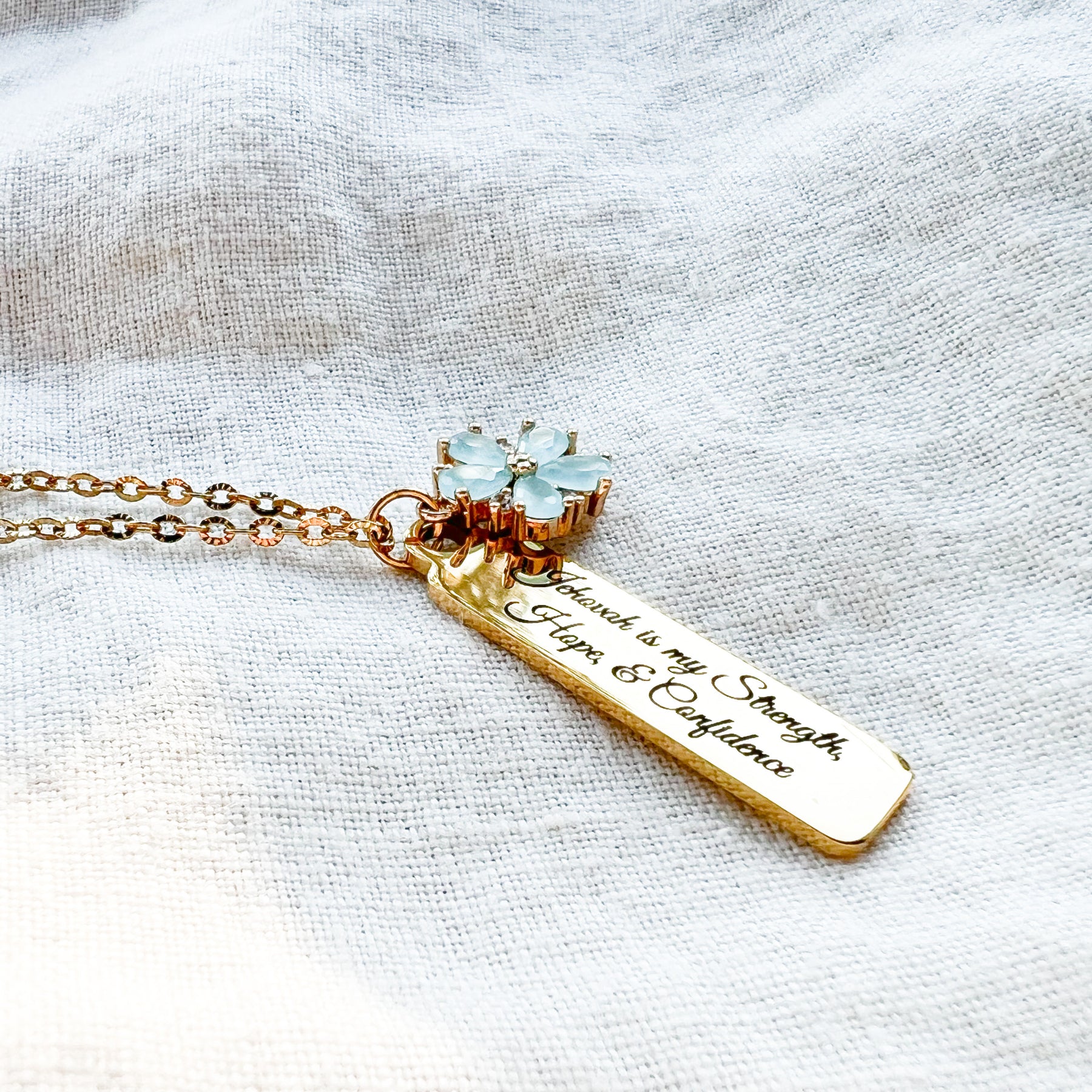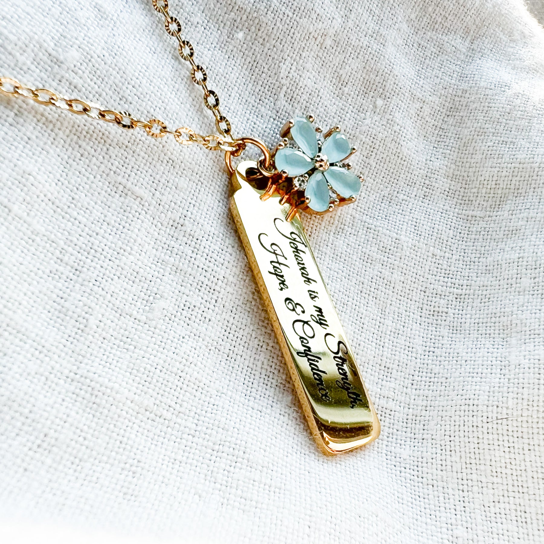 Jehovah is my Strength, Hope, Confidence Blue Stone Gold Necklace