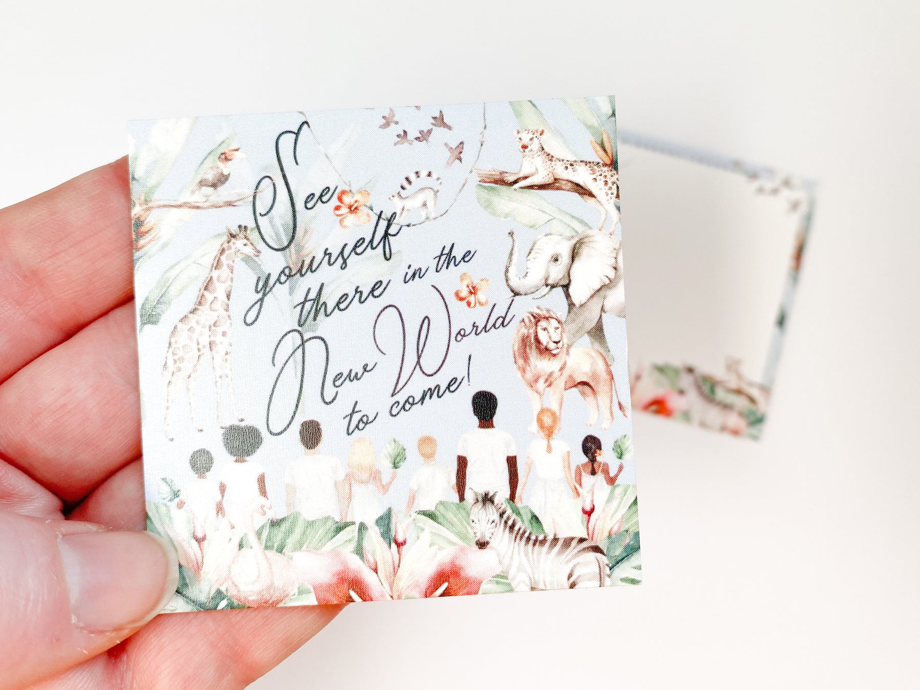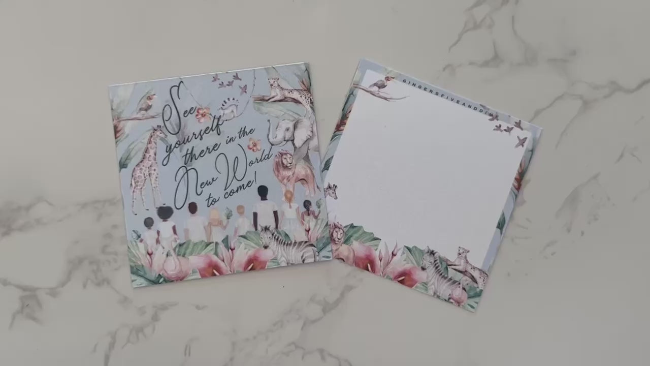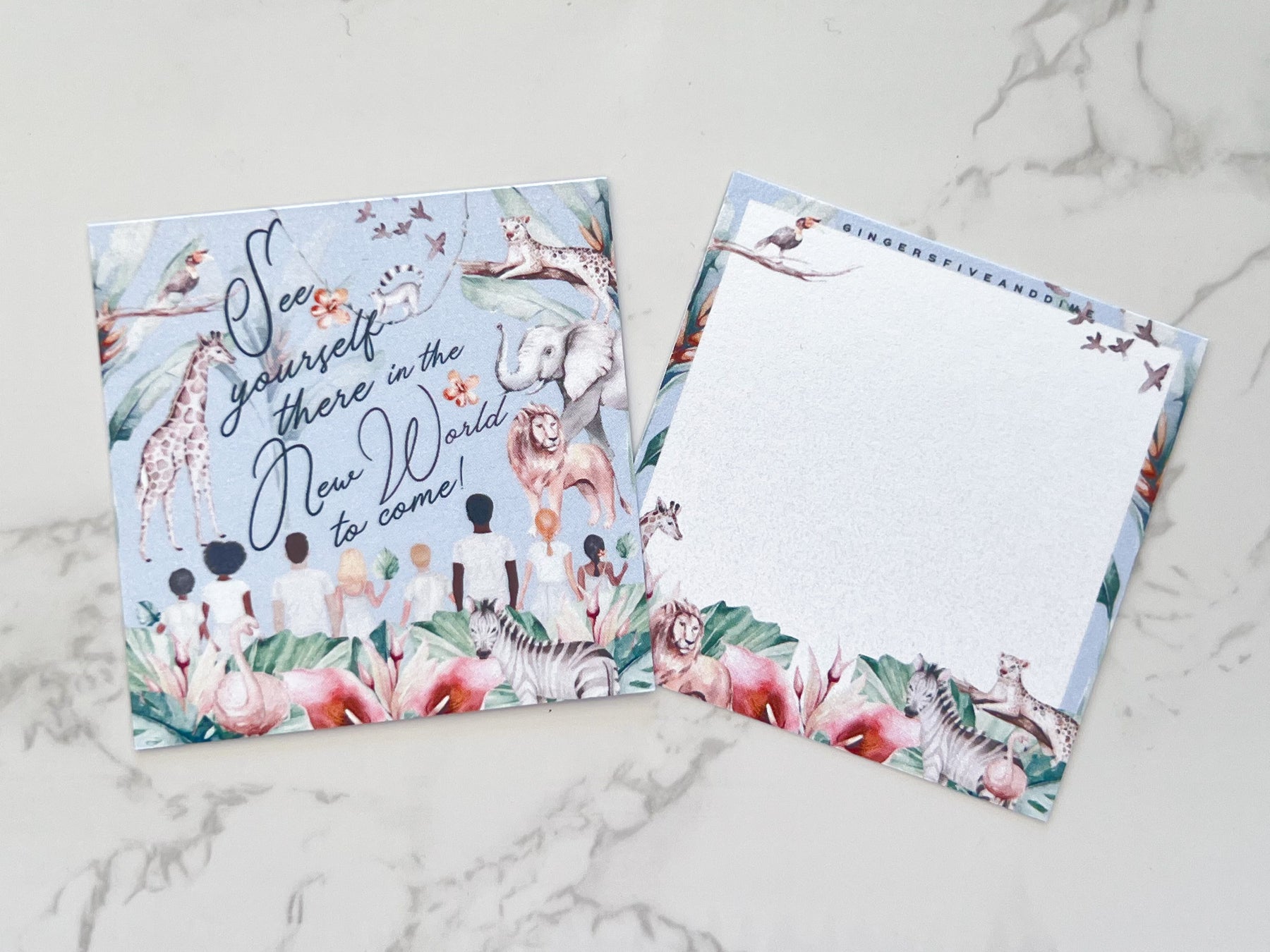 These bite-sized cards measure 2.25-inches square, and are printed on a high-quality gloss front paper, with a blank matte back, perfect for a short and friendly note. With available packs of 5, 10, 20, 50, or 100, there are plenty to go around.