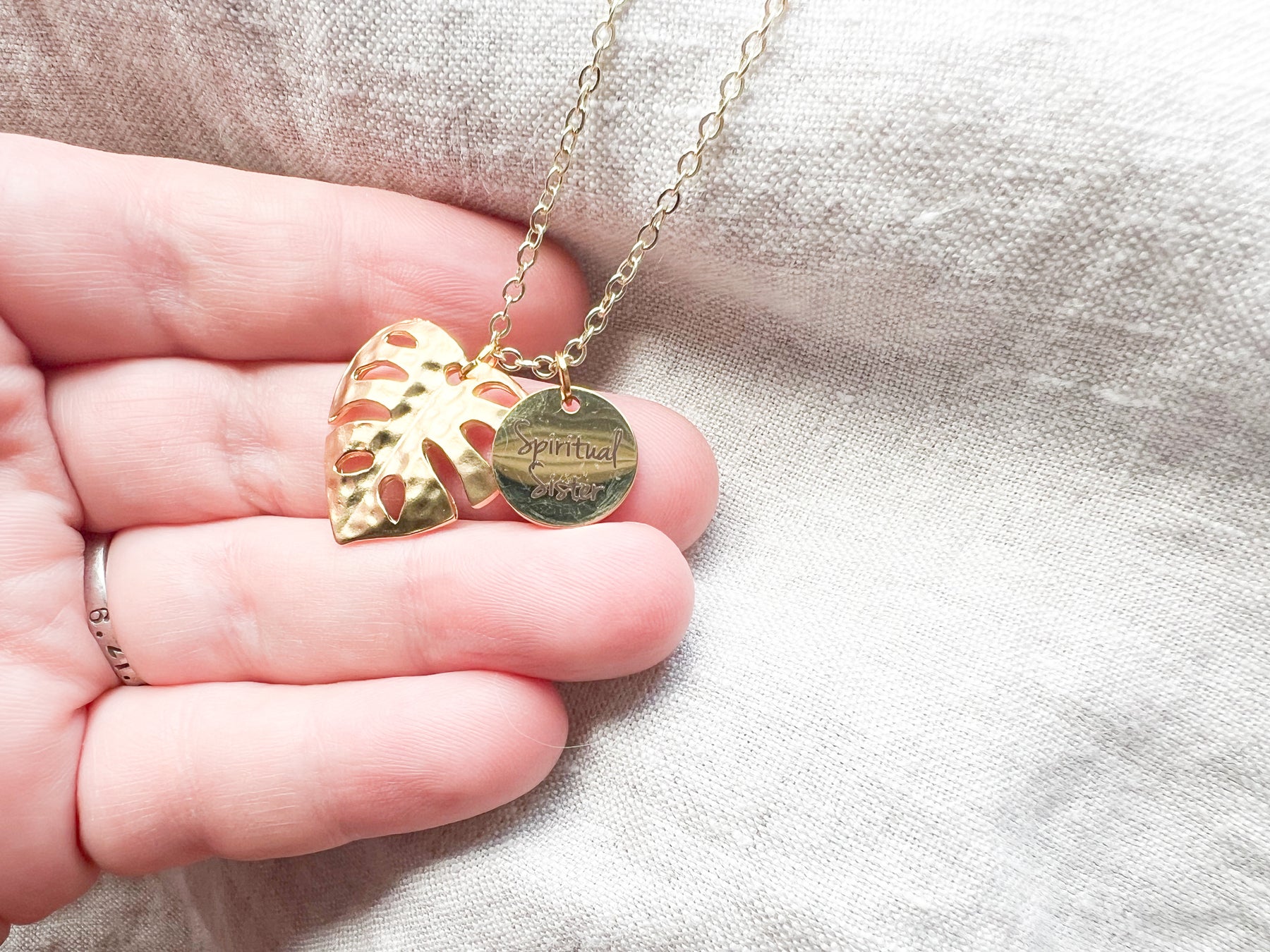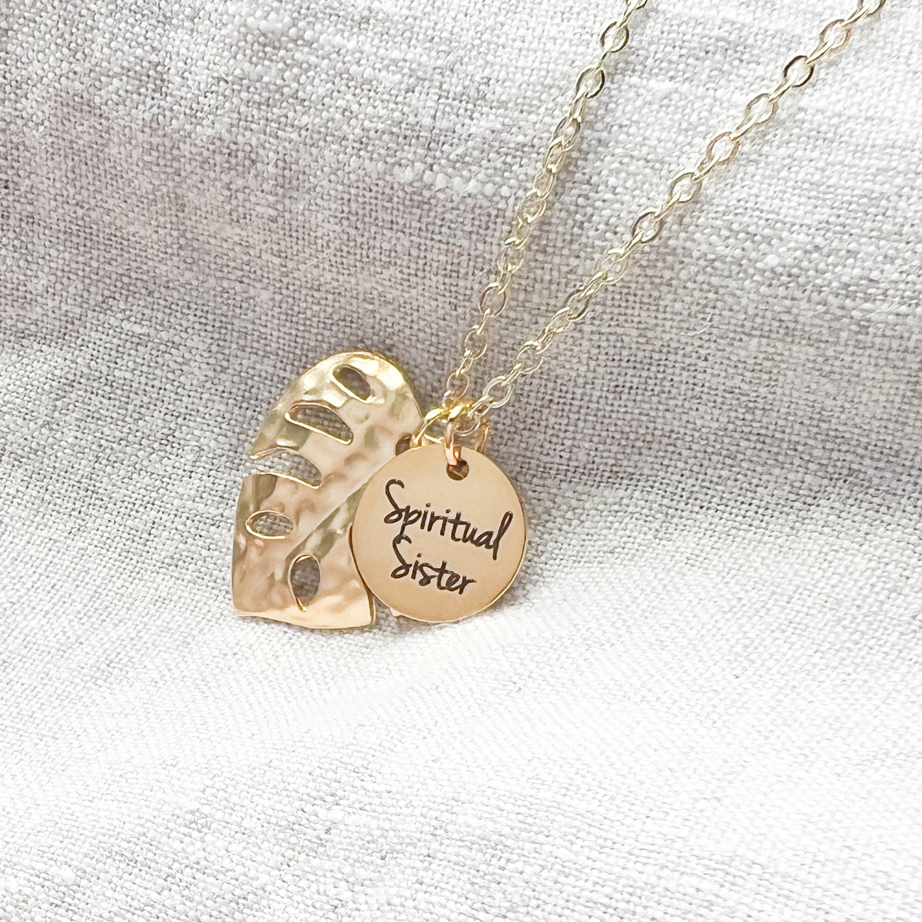 Spiritual Sister Monstera Gold Necklace